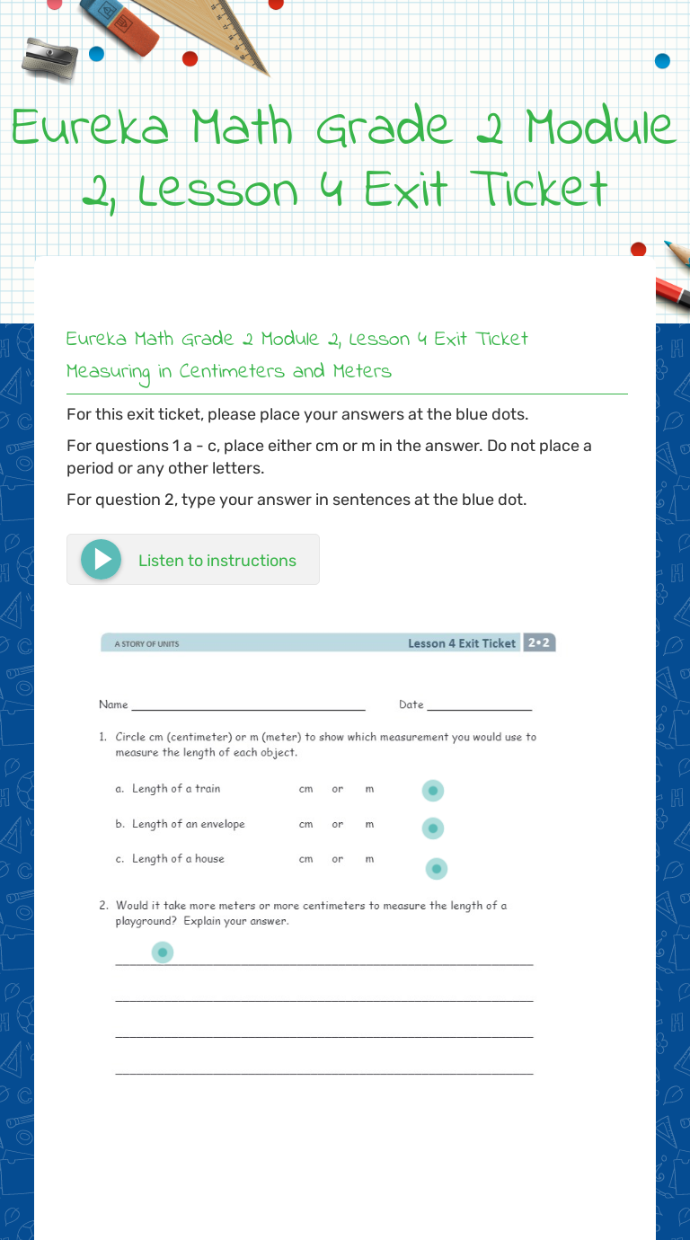 Eureka Math Lesson 2 Exit Ticket 4 1 from ccssmathanswers.com Eureka math grade 5 module 3 lesson 4. Constructions and point placement(s) match directions. Some of the worksheets for this concept are grade 5 module 1, grade 5 module 2, grade 5 module 3, grade 3 book of s s, common core mathematic curriculum lesson 5 2 1 answers, eureka lesson for 6th grade unit one 2 overview, exit ticket, grade 4 module 3. Lesson 3 exit ticket 5.3 eureka : Eureka math grade 4 module 5 lesson 3 problem set answer key. Hexagon matches at least 1 right angle and all sides are not equal rectangle matches at least 1 right angle, all sides are not equal, and at least 1 set of parallel sides Name date solve and show your thinking with a tape diagram. A baker made 9 cupcakes, each a different type.